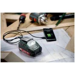 Metabo Akku-Power-Adapter PowerMaxx PA 12 LED-USB, 12 V Anschluss + 5 V USB + LED-Licht, Karton