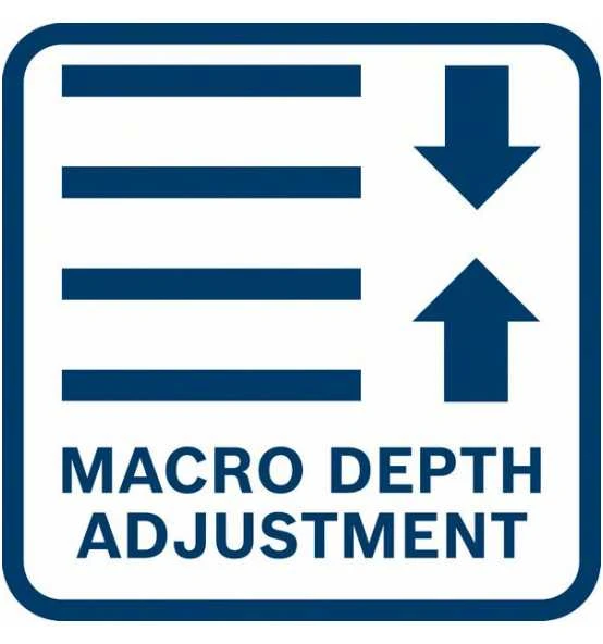 Ferner verfügt GKF 12V-8 Professional über Funktionen wie eine schnelle Makro-Tiefeneinstellung, eine Feineinstellung, eine feststellbare Schnitttiefe und eine Spindelarretierung.