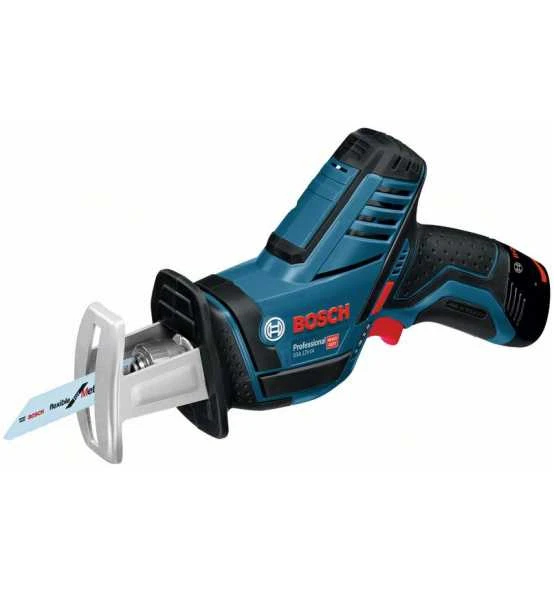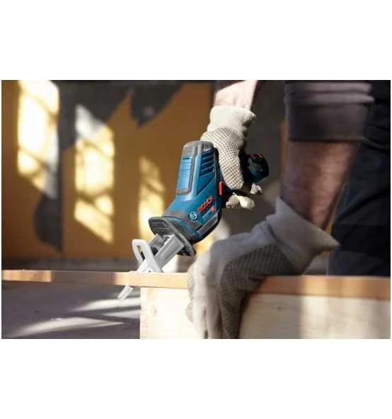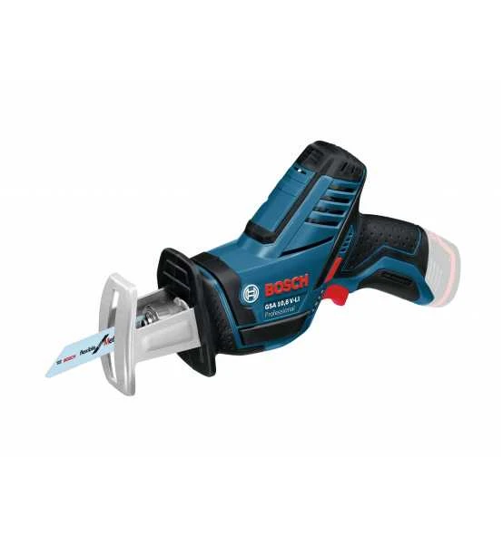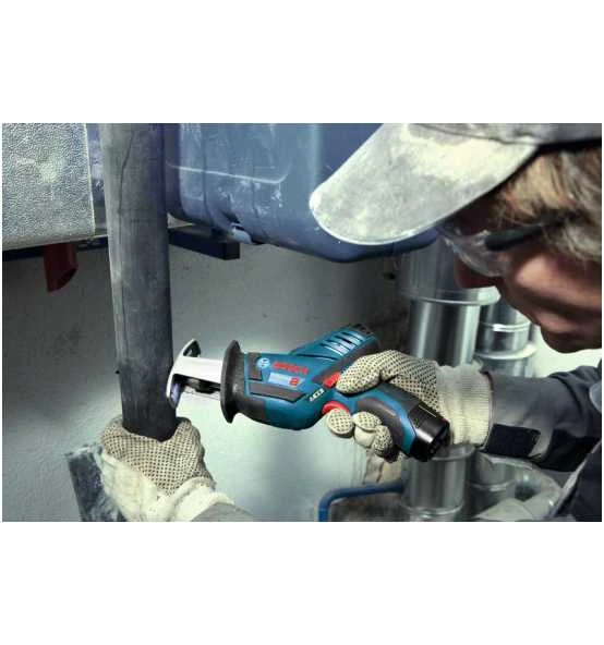 Die Akku-Säbelsäge GSA 12V-14 Professional ist die kompakteste Säbelsäge im 12-Volt-Sortiment von Bosch. Ihr schlankes Design und das werkzeuglose Bosch SDS-System für schnelle und einfache Sägeblattwechsel gewährleisten perfekte Kontrolle und einen reibungslosen Betrieb. Zusätzlich bietet der kleine Griffumfang der Säge exzellente Ergonomie. Ihr bequemes Handling wird durch ein leichtes Gehäuse weiter erhöht. Diese Säbelsäge eignet sich zum Sägen von Holz, Metall und Kunststoff sowie Holzverbundwerkstoffen und Isolationsmaterialien. Sie ist kompatibel mit allen Bosch Professional 12-Volt-Akkus und -Ladegeräten (Professional 12V System). Die GSA 12V-14 Professional verfügt außerdem über ein LED-Licht.