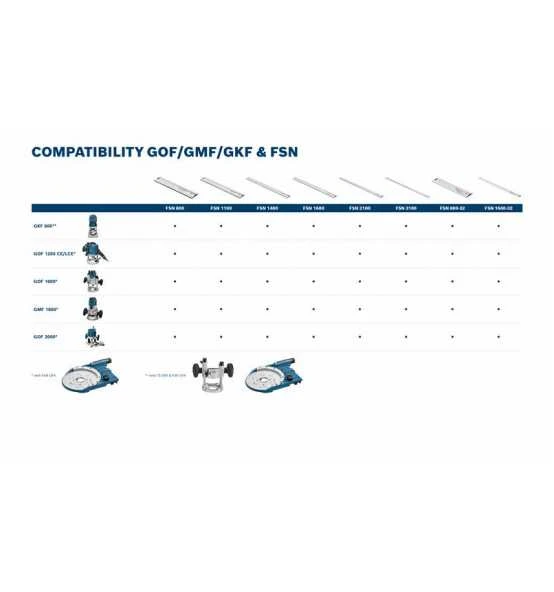 Es ist kompatibel mit den Bosch Führungsschienen und dem Bosch Click & Clean-Absaugsystem.