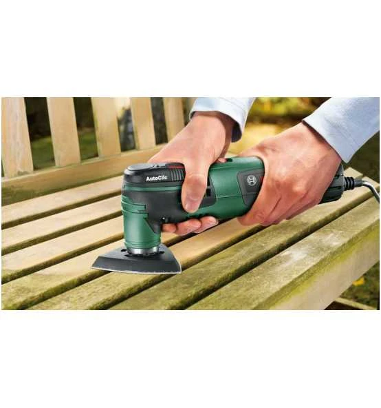 Multifunktionswerkzeug PMF 250 CES. Vielseitige, komfortable Lösung zur Bewältigung verschiedenster DIY-Projekte. Leistungsstarker 250-W-Motor mit elektronischer Drehzahlvorwahl. Bosch AutoClic-System ermöglicht schlüssellosen Zubehörwechsel innerhalb von 3 Sekunden. Es ist umfangreiches Starlock-Zubehör für vielfältige Anwendungen erhältlich. Staubabsaugvorsatz sorgt für mehr Sauberkeit im Arbeitsbereich. Schneiden, Sägen, Schleifen, Schaben, Fräsen, Raspeln und Polieren verschiedenster Materialien. Im Lieferumfang enthalten: BIM Segmentsägeblatt Wood and Metal, 85 mm, ACZ 85 EB (2 609 256 943), Deltaschleifplatte 93 mm, AVZ 93 G (2 609 256 956), Deltaschleifblatt-Set (2 609 256 A54), Staubabsaugung (2 609 256 D57), HCS Tauchsägeblatt Holz, 32 x 40 mm, AIZ 32 EPC (2 609 256 947), Kunststoffkoffer, 4-stufiger Tiefenanschlag für Segmentsägeblätter (2 609 256 C61), Tragekoffer