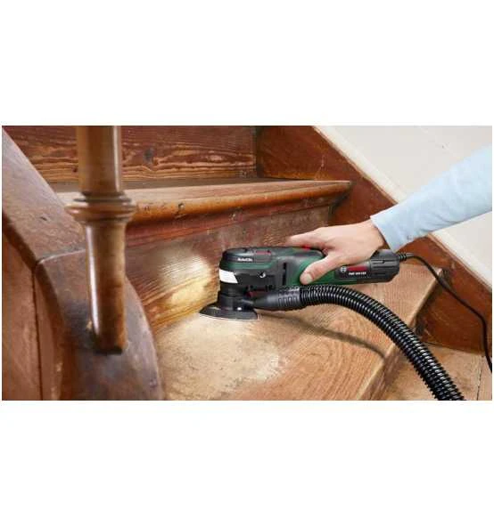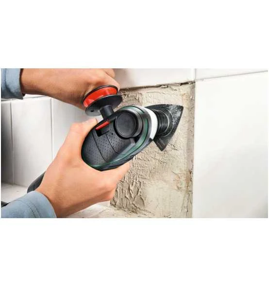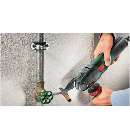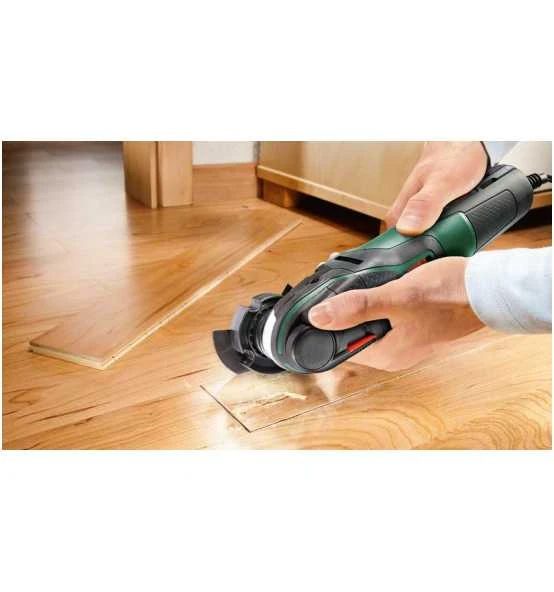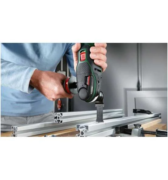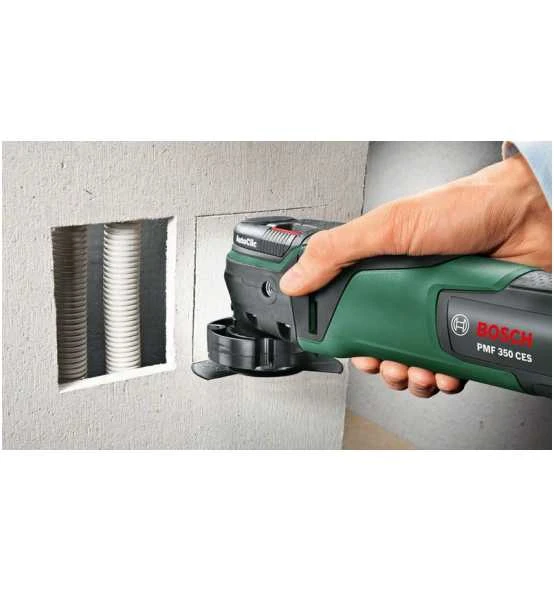 Multifunktionswerkzeug PMF 350 CES. Vielseitige, leistungsstarke Lösung zur Bewältigung verschiedenster anspruchsvoller DIY-Projekte. Leistungsstarker 350-W-Motor mit elektronischer Drehzahlvorwahl. 180°-Lichtband für optimale Beleuchtung des Arbeitsbereichs. Bosch AutoClic-System ermöglicht schlüssellosen Zubehörwechsel innerhalb von 3 Sekunden. Es ist umfangreiches Starlock-Zubehör für vielfältige Anwendungen erhältlich. Schneiden, Sägen, Schleifen, Schaben, Fräsen, Raspeln und Polieren verschiedenster Materialien. Im Lieferumfang enthalten: Anti-Vibrationshandgriff (2 609 256 D59), BIM Tauchsägeblatt Wood and Metal, 65 x 50 mm, PAII 65 APB (2 609 256 D56), BIM Segmentsägeblatt Wood and Metal, 85 mm, ACZ 85 EB (2 609 256 943), Deltaschleifplatte 93 mm, AVZ 93 G (2 609 256 956), Deltaschleifblatt-Set (2 609 256 A54), Staubabsaugung (2 609 256 D57), HCS Tauchsägeblatt Holz, 32 x 40 mm, AIZ 32 EPC (2 609 256 947), 4-stufiger Tiefenanschlag für Segmentsägeblätter (2 609 256 C61), Tragekoffer