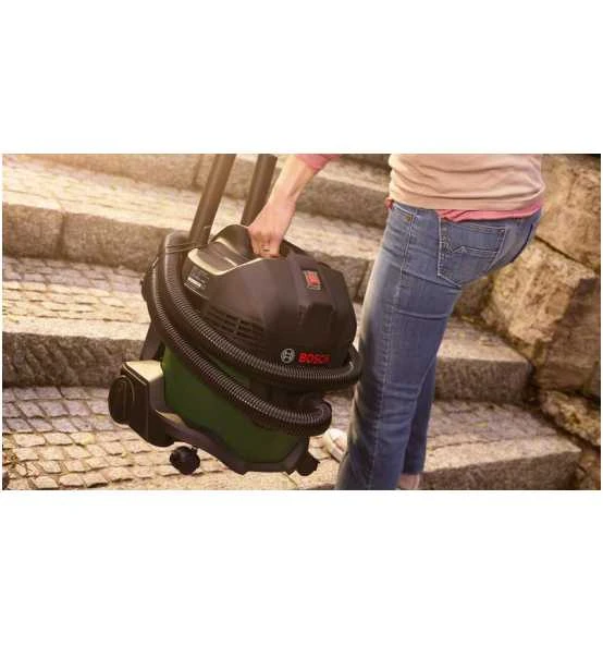 Nass- und Trockensauger UniversalVac 15. Einfaches Aufsaugen verschiedenster nasser und trockener Verschmutzungen. Bodendüse für eine universale Verwendung zum Beseitigen sowohl nasser als auch trockener Verschmutzungen. Sämtliches Zubehör wird für eine bequeme Aufbewahrung direkt am Sauger verstaut. Dank des integrierten Patronenfilters zum Nass- und Trockensaugen muss der Filter nicht gewechselt werden. Die Blasfunktion ist ideal zum Entfernen von Laub und Schmutz in schwer zugänglichen Bereichen. Im Lieferumfang enthalten: Papierfilterbeutel (2 609 256 F32), Vorfilter (2 609 256 F41), Filter (2 609 256 F35), Fugendüse (2 609 256 F26), Haltegriff (2 609 256 F31), 2 Saugrohre zu jeweils 0,5 m, Ø 35 mm (2 609 256 F27), Bodendüse (2 609 256 F21), Gummilippe / Bürsteneinsatz (2 609 256 F23), Schlauch 2,2 m, Ø 35 mm (2 609 256 F29), Universaladapter (2 609 256 F28)