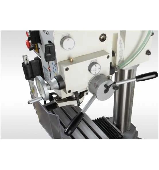 Die MFB 45 SGV kann alles: Plan- und Schaftfräsen, Bohren, Senken,Reiben und Gewindeschneiden. Die Maschine ist mit einem leichtgän-gigen, höhenverstellbaren Koordinaten-Kreuztisch ausgestattet. Dankeines erweiterten Pinolenabstands zur Grundplatte von 1.280 mm istsie auch für die Bearbeitung von hohen Werkstücken einsetzbar.Erweiterte Flexibilität bieten ein schwenk- und höhenverstellbarerFräskopf, ein automatischer Pinolenvorschub mit drei Schaltstufen,ein Betriebsmodus für Gewindeschneiden und ein integriertes Kühlmittelsystem mit Tank im Maschinensockel.