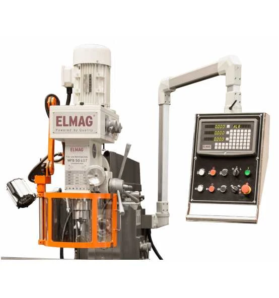 Bohren, Plan- und Schaftfräsen auf acht Drehzahlen mittels Vertikalspindelund Gleich- oder Gegenlauffräsen auf zwölf Drehzahlen mittels Horinzont-talspindel – die kräftige Getriebe-Fräs- und Bohrmaschine MFB 50 LGTbietet sowohl für engbemaßte Werkstäckdetails als auch für Passflächenund lange Führungsnuten die optimale Bearbeitungsform.Die MFB 50 LGT ist aufgrund ihrer hohen Präzision und sehr robustenBauweise bestens für den Maschinen- und Werkzeugbau geeignet,dank ihres Kreuztischantriebs auch für die Serienproduktion. Sie istserienmäßig mit einer digitalen 3-Achs-Positionsanzeige von SINO ausgestattet.