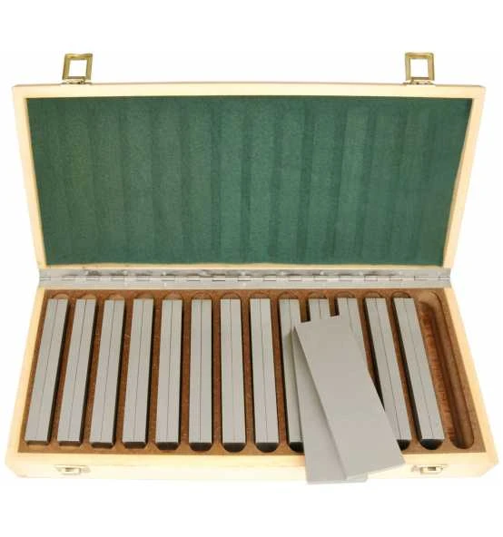 – Paarweise feingeschliffen- Spezialstahl gehärtet, 55 – 62 HRC- Höhentoleranz +- 0,01 mm- Parallel-Höhentoleranz 0,005 mm auf 100 mm Länge- Breitentoleranz +- 0,02 mm- Parallel-Breitentoleranz 0,02 mm