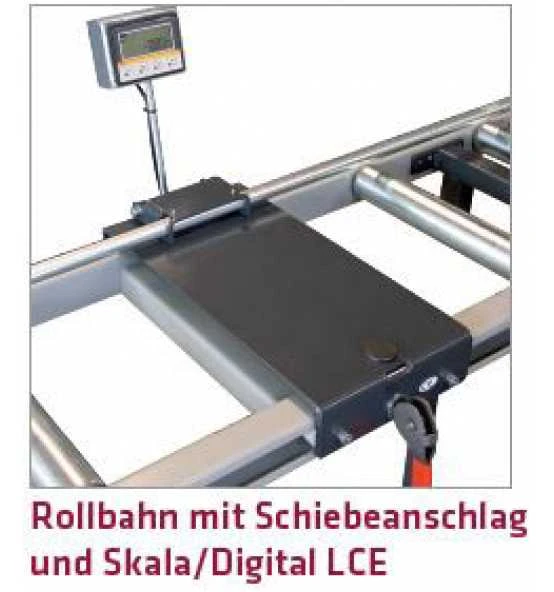 Die Rollbahn von der Maschine sollte mit einem Schiebeanschlag und einer Messskala ausgestattet sein.- Präzise messen und schnittfertig positionieren – die Verwendung einer Stangensperre und das Einstellen eines Materialanschlags entfällt