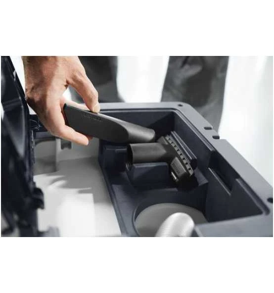 - Reinigungszubehör bereits im Lieferumfang enthalten und im Absaugmobil untergebracht