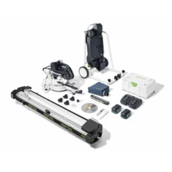 Kreissägeblatt WOOD UNIVERSAL HW 216×2,3×30 W36, Schraubzwinge FSZ 120, LED-Schlaglicht, Winkelschmiege, Erhöhung, Staubfangbeutel, Innensechskantschlüssel SW 6, Energie-Set SYS 18V 2×5,0/TCL 6 DUO, Untergestell, Kappanschlag KA-UG-KS 60 R/L