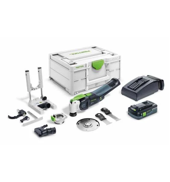 1 x Akkupack BP 18 Li 4,0 HPC-ASI, Schnellladegerät TCL 6, Absaugvorrichtung OSC-AV, Ansetzhilfe OSC-AH, Tiefenanschlag OSC-TA, Adapter OSC-A, Universal-Sägeblatt USB 78/32/Bi/OSC, Universal-Sägeblatt USB 50/35/Bi/OSC, Holz-Sägeblatt HSB 100/Bi/OSC, Systainer SYS3 M 187