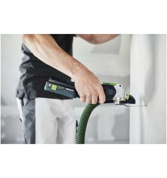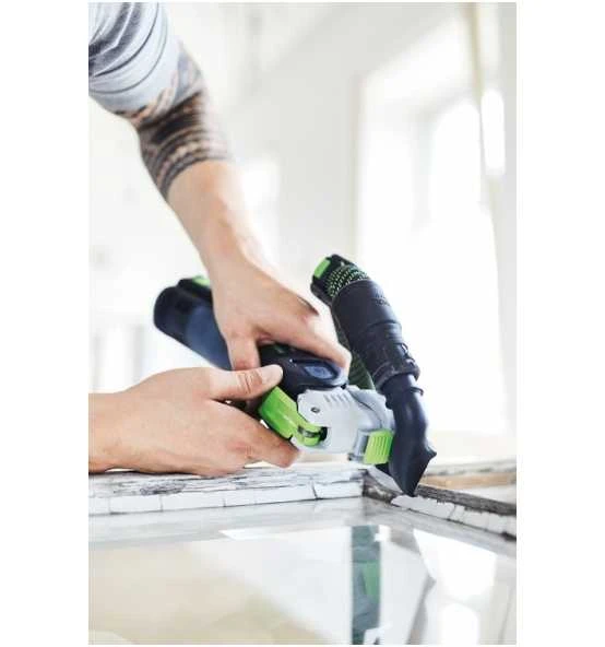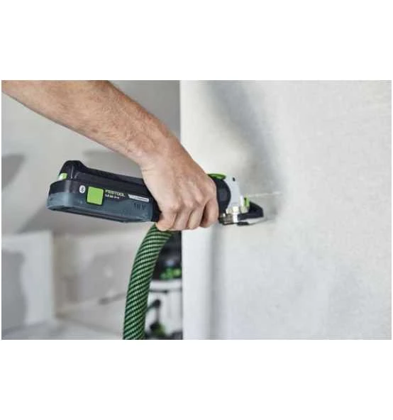 - Durchdacht: Optionales System-Zubehör ermöglicht exakt geführte Eintauchschnitte sowie staubarmes Sägen – selbst bei Überkopf-Arbeiten