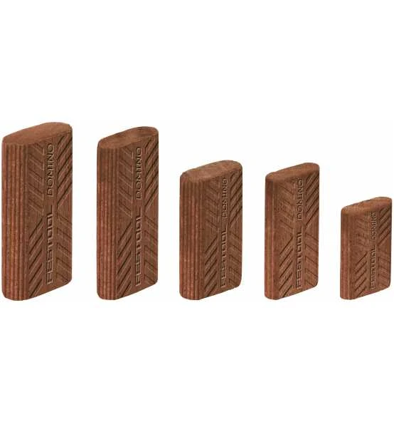 - Die seitlich überstehenden Führungsrippen zentrieren den Dübel mittig in der DOMINO Fräsung und sorgen somit für ein perfektes Ausrichten der Werkstücke