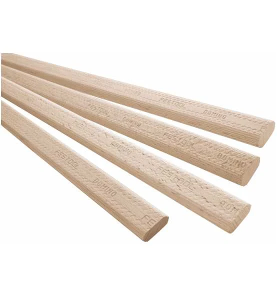 - Die seitlich überstehenden Führungsrippen zentrieren den Dübel mittig in der DOMINO Fräsung und sorgen somit für ein perfektes Ausrichten der Werkstücke