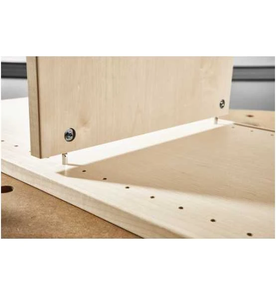 - der DOMINO / LR 32 Verbinder KV-LR 32 D8/50 wird in der Schrankseite in eine 5 mm Lochreihenbohrung und im Konstruktionsboden mit der DOMINO Dübelfräse DF 500 positioniert