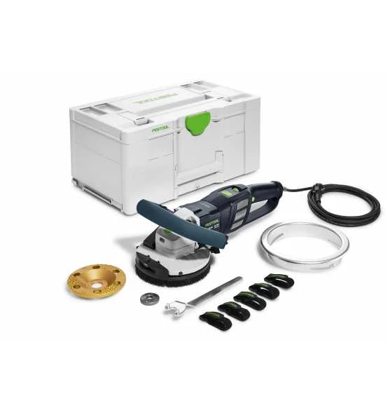 Führungstisch, Spannflanschgarnitur, Stirnlochschlüssel KF-AG, Klettverbinder KV-215 (5er Pack), Diamantscheibe DIA PAINT-D130 Premium, Systainer SYS3 L 237