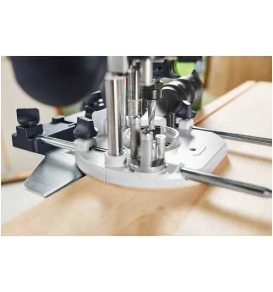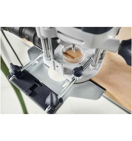 - Die Oberfräse steht quer zum Anschlag, dadurch ist eine sehr gute Sicht auf den Fräser möglich