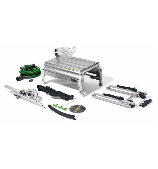 Kreissägeblatt WOOD UNIVERSAL HW 190×2,6 FF W32, Winkelanschlag, Klappbeine, 3 x Splitterschutz, Absaug-Set, Schiebestock, Zubehör-Garage, Abstützung mit Transportrolle, Innensechskantschlüssel SW 6