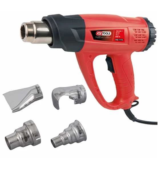 Anwendungsgebiete: Entfernen von Farbe, Verlöten von Rohren, Schrumpfen von PVC, Verschweißen und Biegen von Kunststoffen, Trocknungen, Auftauen etc.