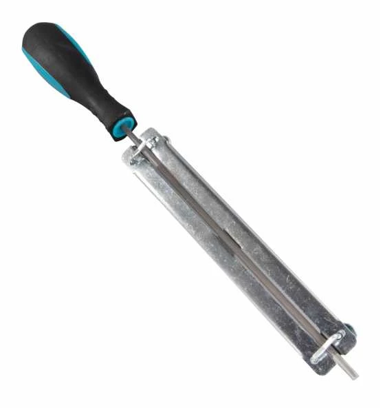 Feilenhalter mit Rundfeile 4,5 mm und Kettenmesslehre, mit weichem Feilverhalten
