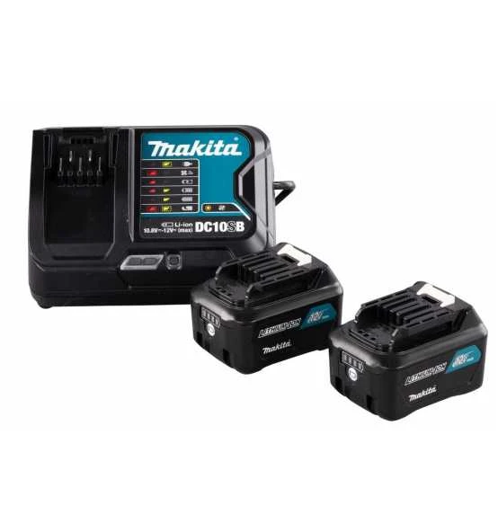 Power Source-Kit bestehend aus 2 Akkus BL1041B 4,0 Ah und 1 Schnellladegerät DC10SB. Lieferung im Karton.