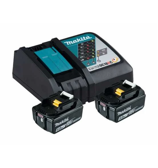 Power Source-Kit bestehend aus 2 Akkus BL1850B 5,0 Ah und 1 Schnellladegerät DC18RC. Lieferung im Karton.