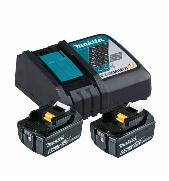 Power Source-Kit bestehend aus 2 Akkus BL1860B 6,0 Ah und 1 Schnellladegerät DC18RC. Lieferung im Karton.