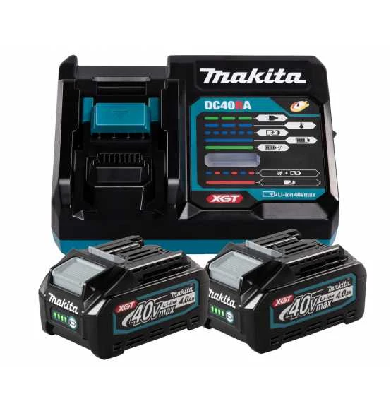 Power Source-Kit bestehend aus 1 Schnellladegerät DC40RA, 2 Akkus BL4040, 4,0 Ah.