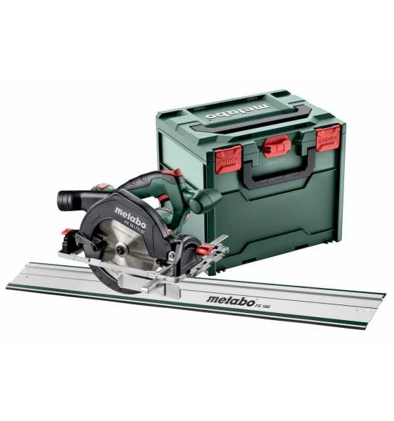 Hartmetall-Kreissägeblatt (18 Zähne), Parallelanschlag, Sechskantschlüssel, Führungsschiene FS 160 (160 cm), metaBOX 340, ohne Akkupack, ohne Ladegerät