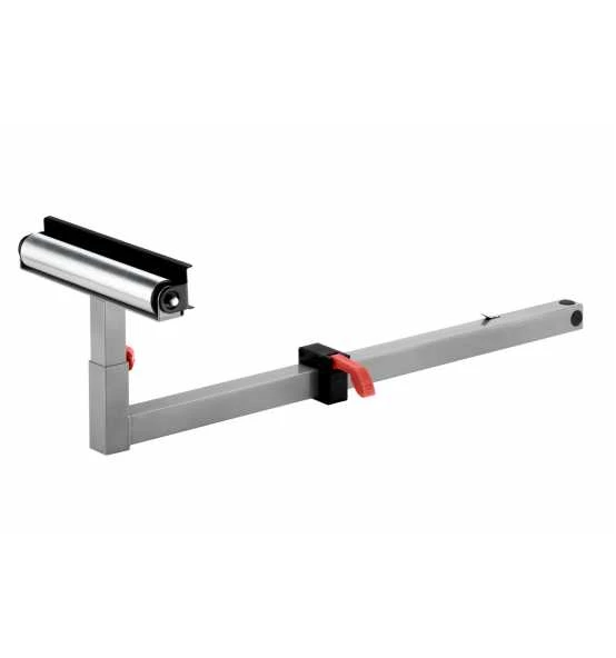 1 ausziehbare Werkstückauflage mit Rolle und klappbarem Anschlag für exakte Serienschnitte