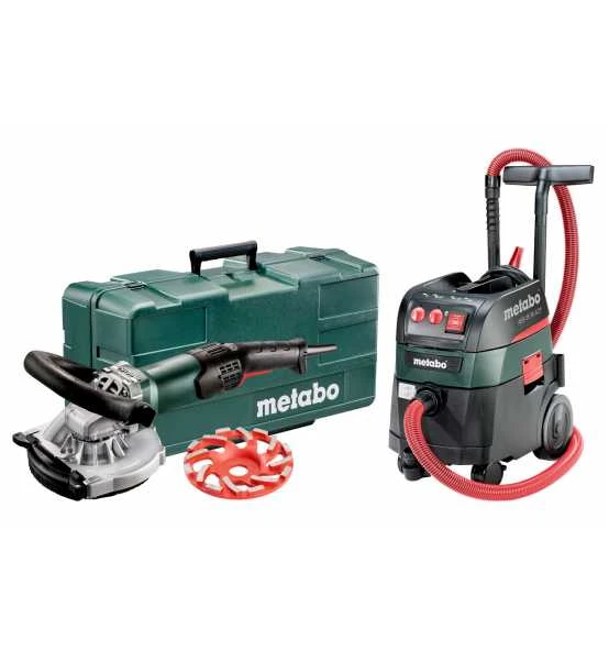 Renovierungsschleifer RSEV 19-125 RT: Diamanttopfscheibe Beton professional“, Bügelgriff. Allessauger ASR 35 M ACP: Antistatik-Saugschlauch (Ø 35 mm, 4 m lang), Handgriff-Zwischenstück, Anschlussmuffe Ø 41/48 mm, 2 Saugrohre aus Kunststoff, 2 Polyester-Filterkassetten (Klasse M), PE-Filterbeutel, Fugendüse, Bodendüse (300 mm breit)10″